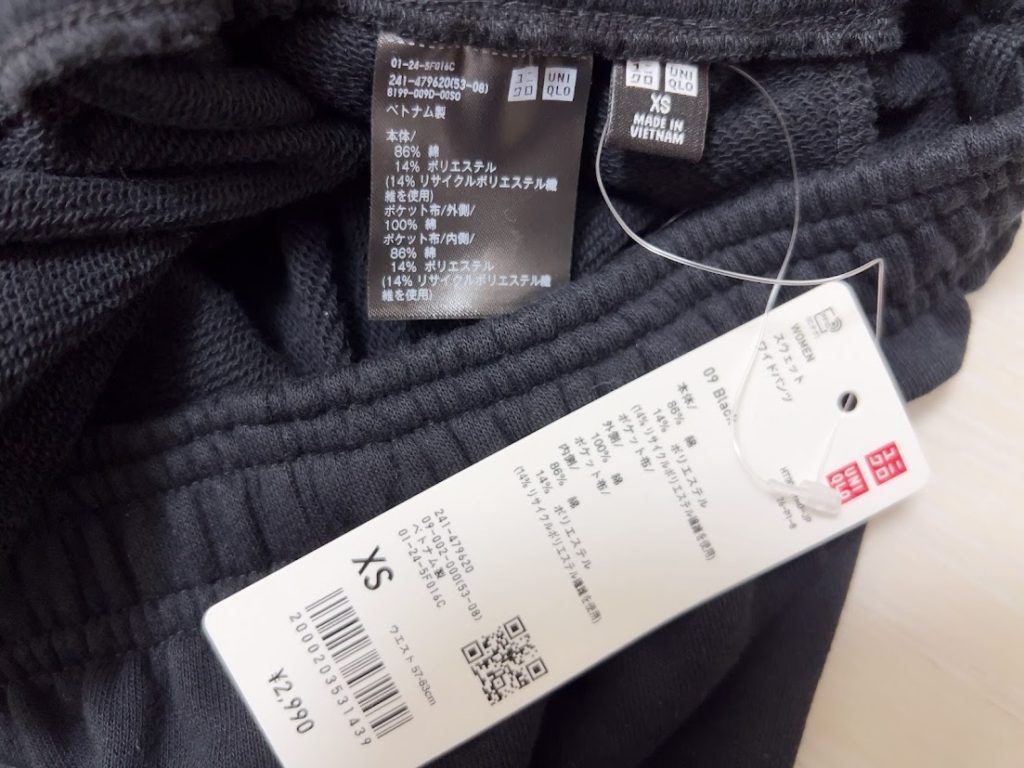 ユニクロ・スウェットワイドパンツ【XS】241-479620